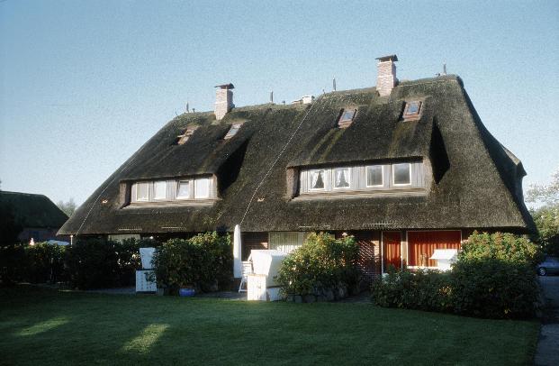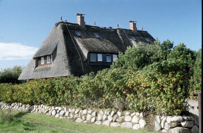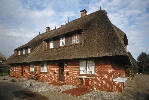 Die Ferienwohnung befindet sich in einem reetgedeckten Haus in der Ferienanlage "Weißes Kliff" in Braderup auf Sylt.